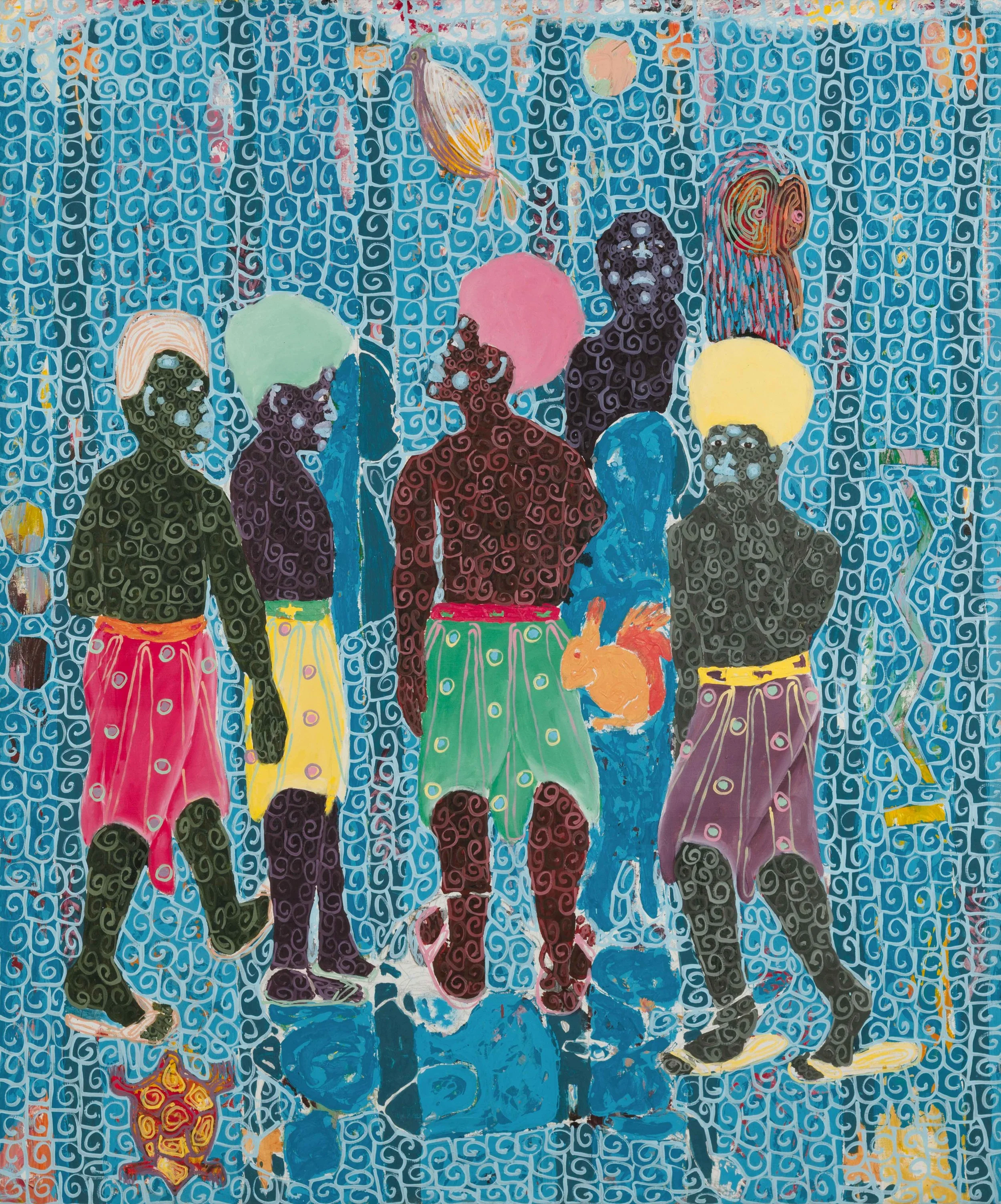 Guetarou [Se parer de grigris/Adorn Yourself With Juju], 2024, Acrylic on canvas, 59” x 51.125”, 150 x 130 cm