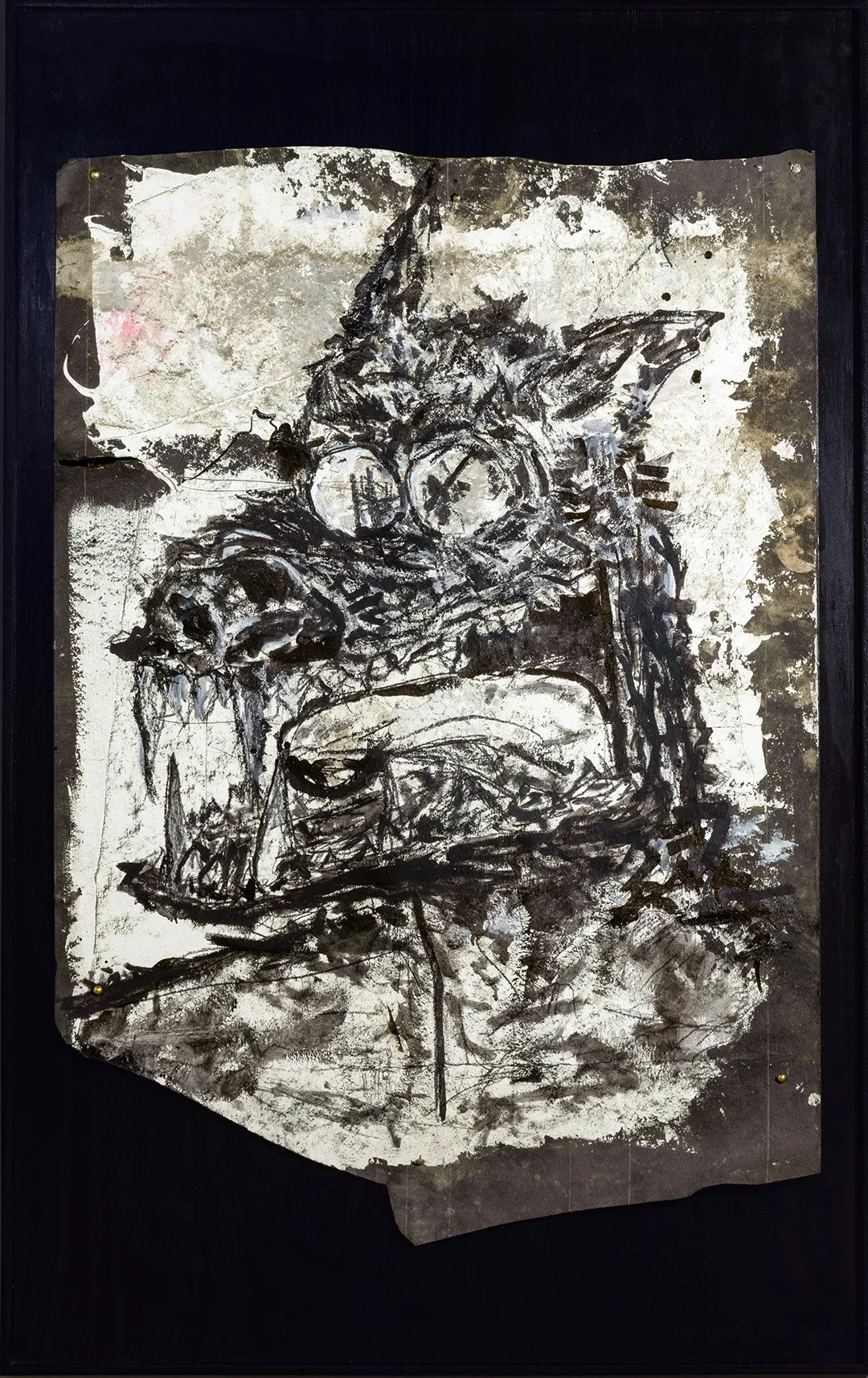 And I step forward, 2024 Acrylic, Charcoal, oil on roofing paper 65” x 31.13”