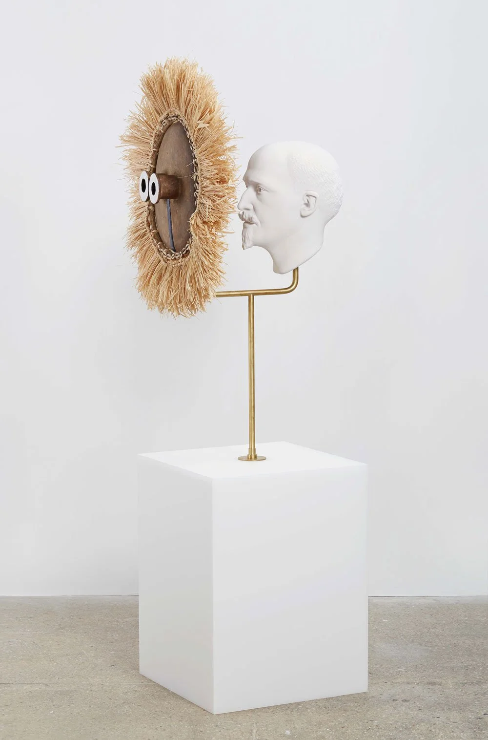 Pende Mask (DR Congo), pigment, natural fibers, plaster, brass, acrylic